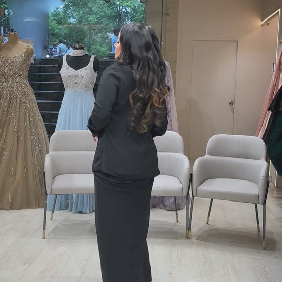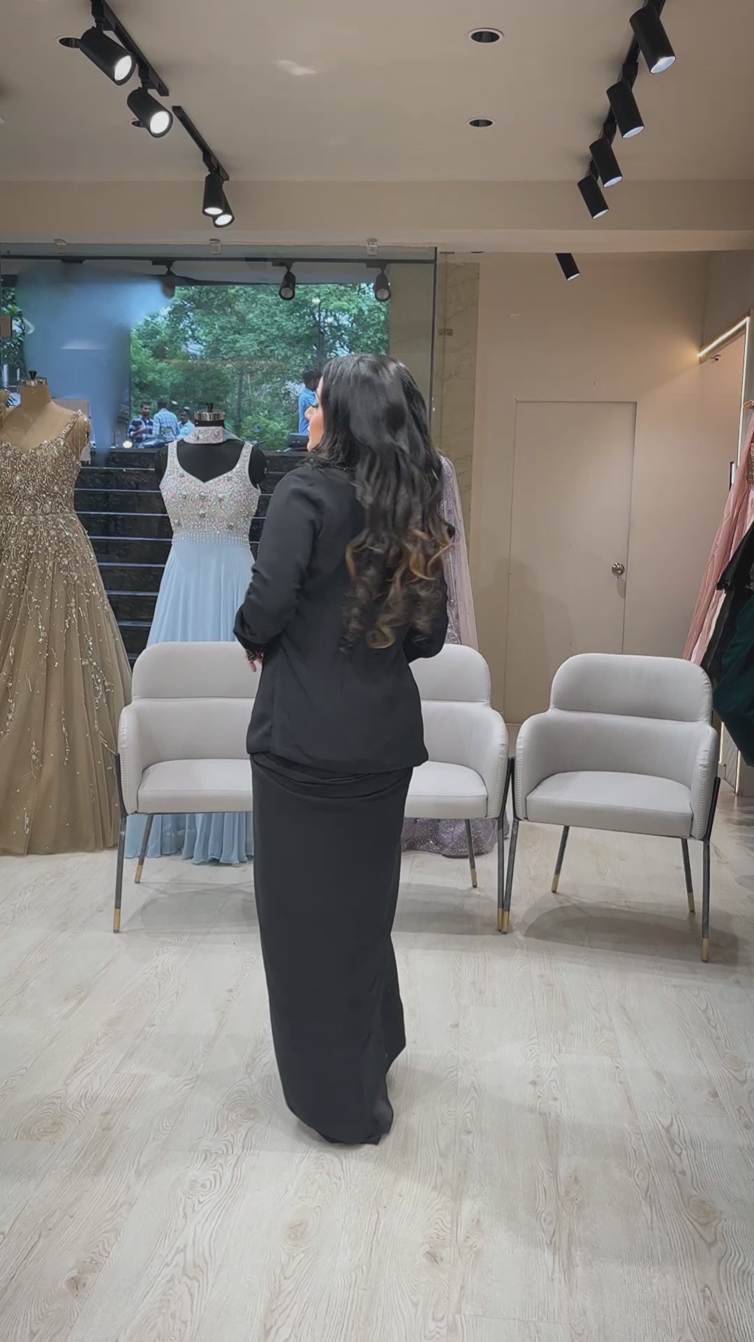 Black crop top dhoti with jacket in georgette with pearl & tube