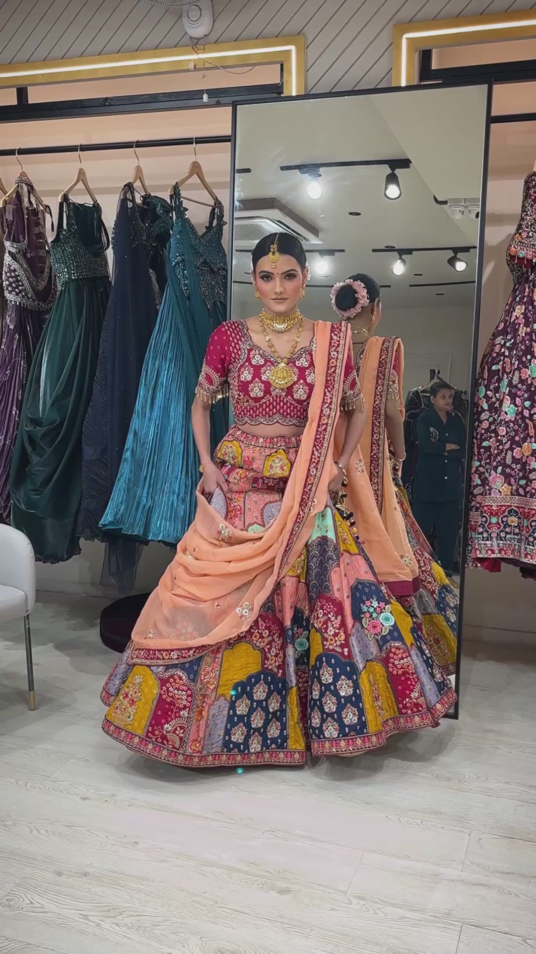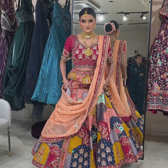 Brocade marwad lehenga in multicolour with resham & pearl work