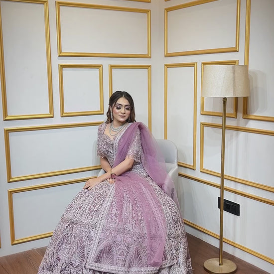 Dusty mauve lehenga with crystal & zari work on net with heavy dupatta