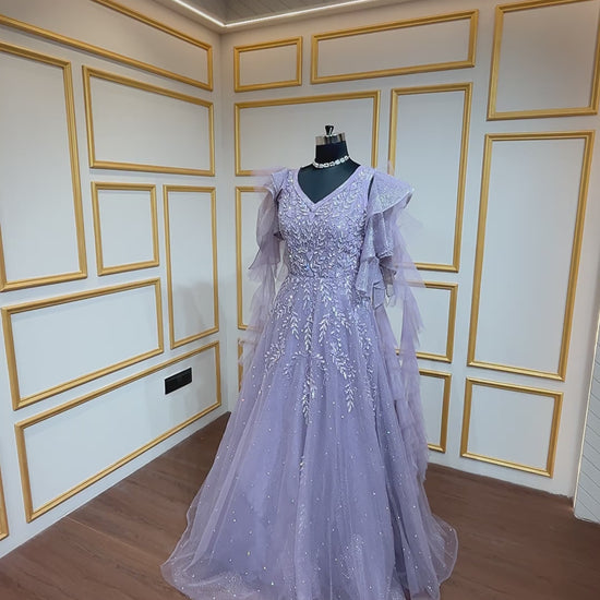 Lavender gown with pearl & crystal in shimmer net