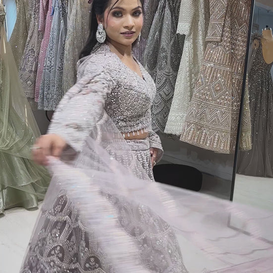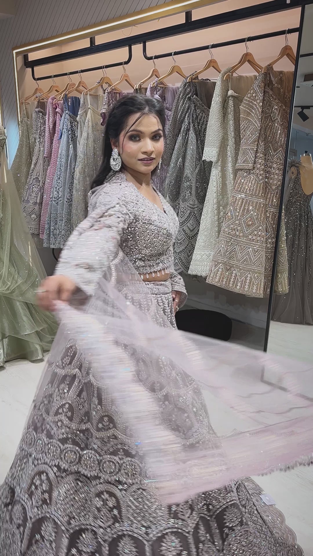 Dusty lavender lehenga in net with four side border dupatta special for bridesmaids