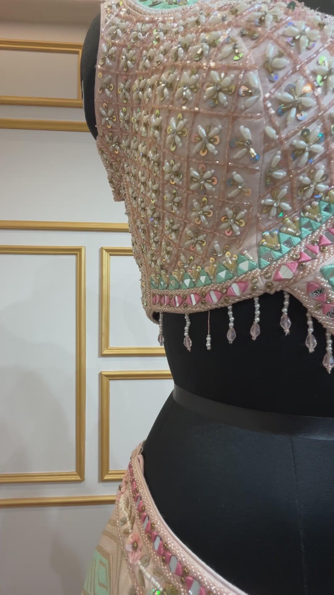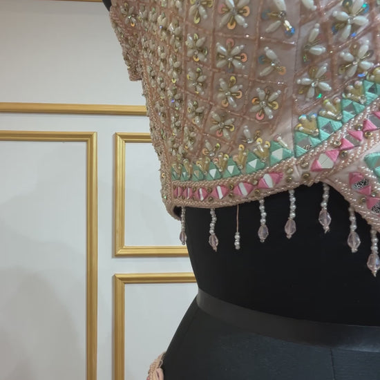 Work: Cut Dana, Pearl, Sequins, Zarkan, Mirror, Thread, Zari, Copper
