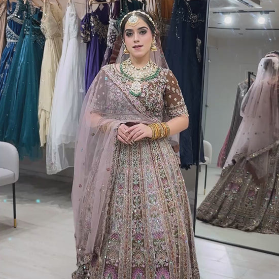 Multicolor lehenga with thread & crystal work on georgette with 4 border dupatta