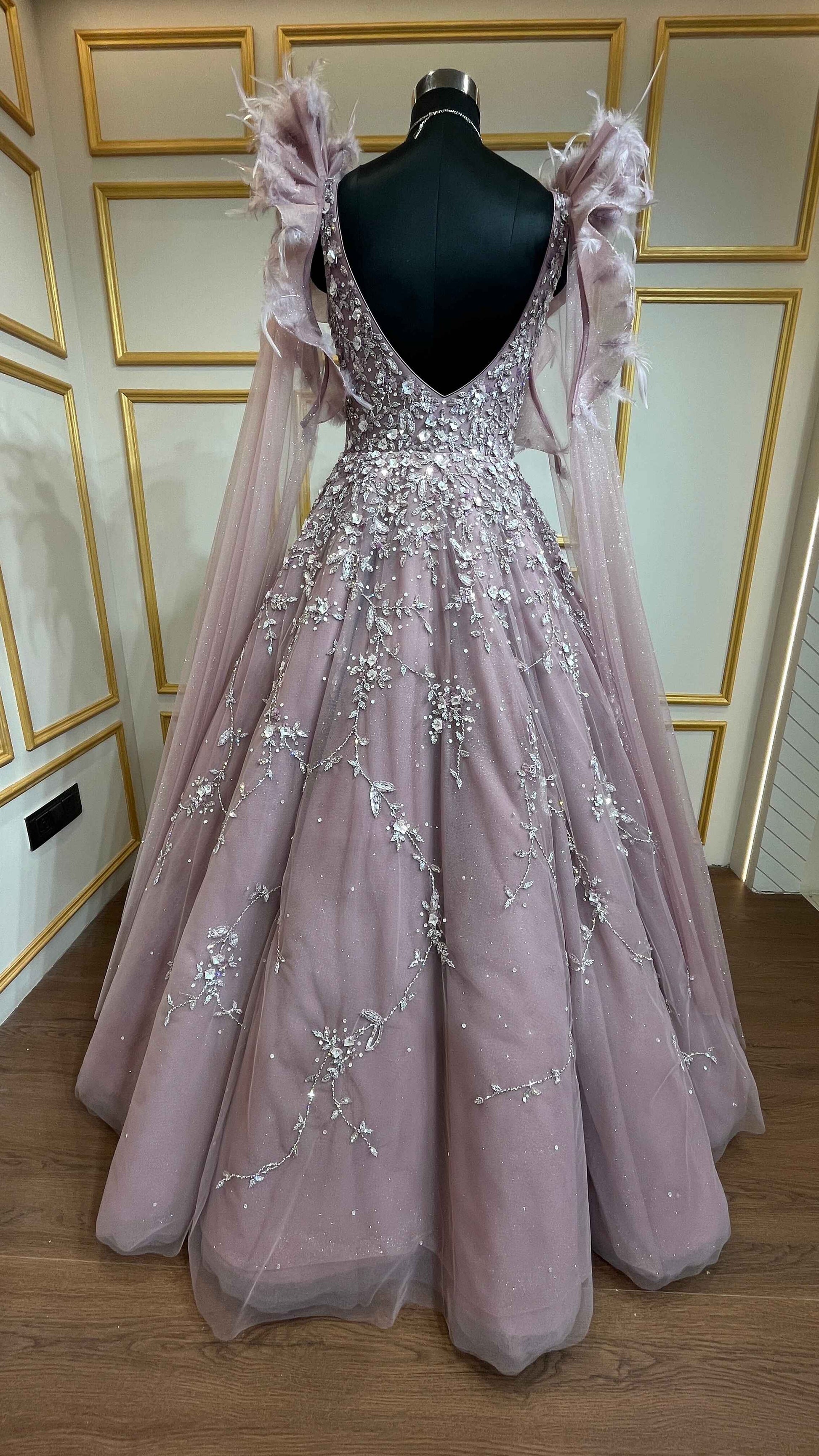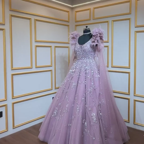 Net ball gown sequins & crystal in light mauve