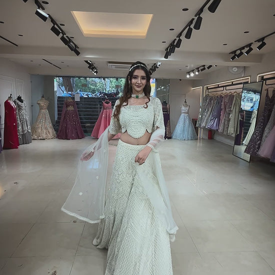 Net bridal lehenga choli in ivory with pearl & sequins