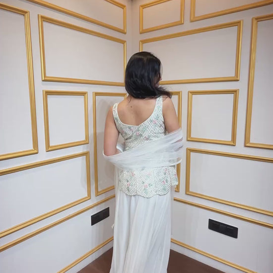Off white peplum top with sequins & swarovski along with georgette plazo