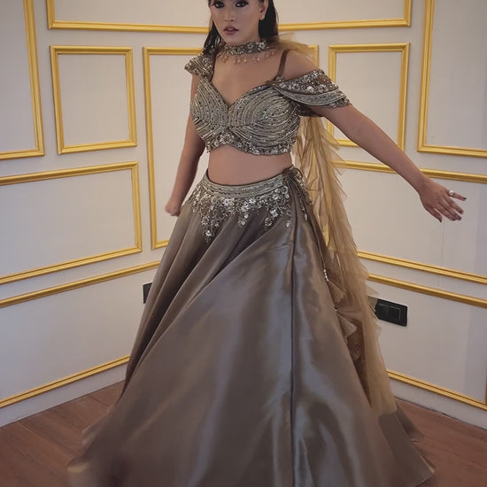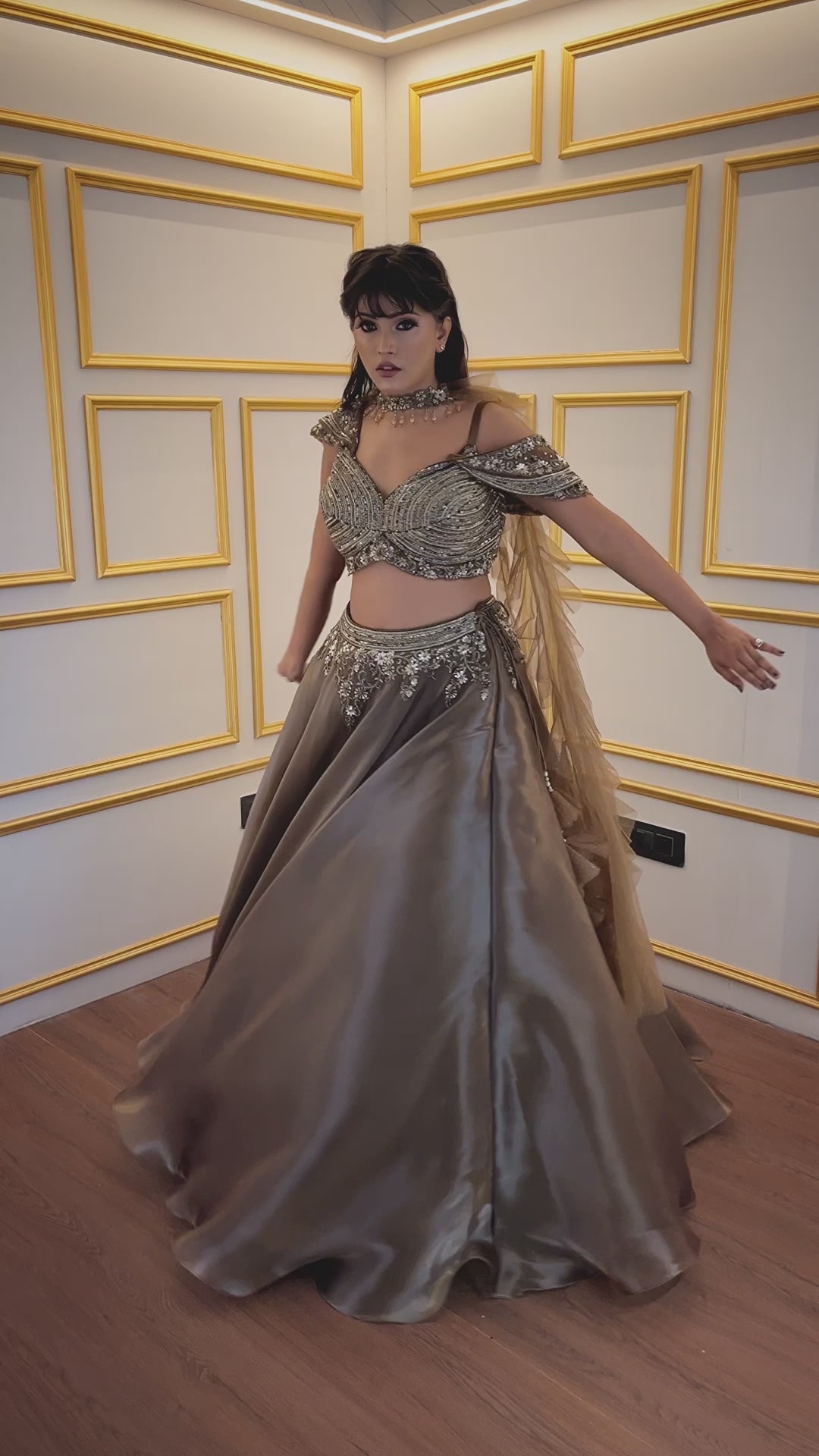 Organza lehenga choli in mehendi green with sequins & cut dana