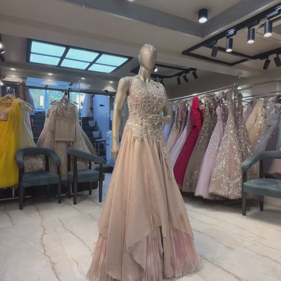 Patch & cut dana work on rose gold tissue dress