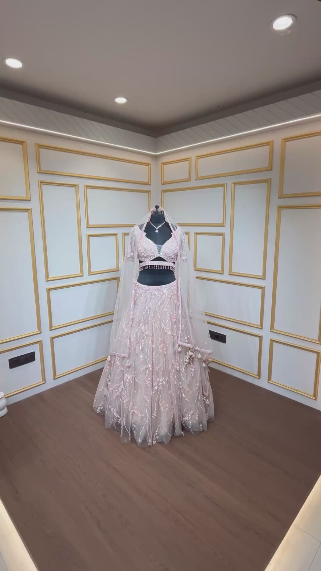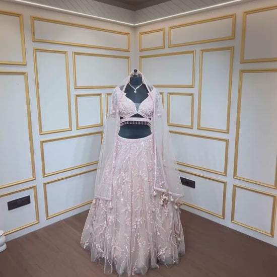Pearl & cut dana work on powder peach lehenga with cutwork blouse and heavy dupatta