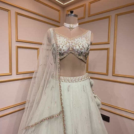 Work: Zarkan, Sequins, Cut Dana,Resham, Zari, Pearl, Dabka